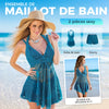Maillot de bain deux pièces pour femme, col en V, bordure en dentelle et shorty