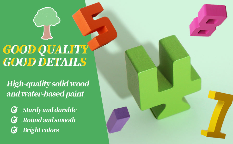 🌿 Artisanat en bois naturel : Fabriqués à partir de bois durable et respectueux de l'environnement, ces blocs sont sûrs et durables, rendant l'apprentissage à la fois tactile et amusant !