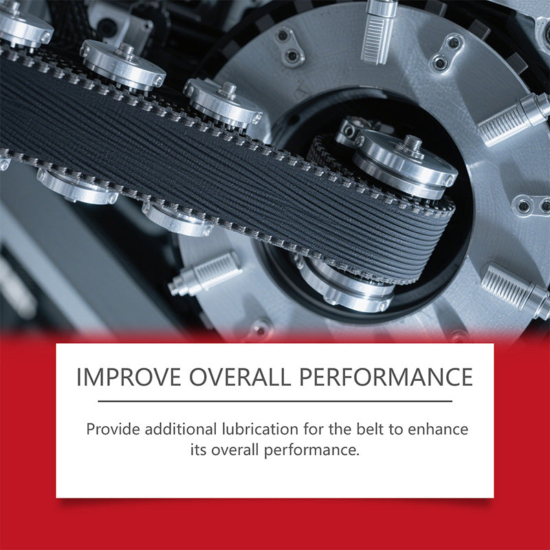 PROLONGE LA DURÉE DE VIE DES COURROIES : Les composés lubrifiants haut de gamme pénètrent profondément dans les fibres de la courroie pour réduire les frictions et prévenir l’usure prématurée. Aide les courroies à durer plus longtemps tout en maintenant une tension et des performances optimales.