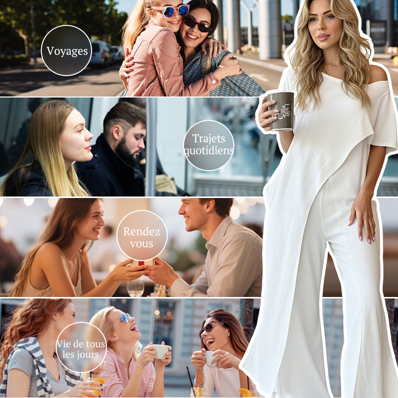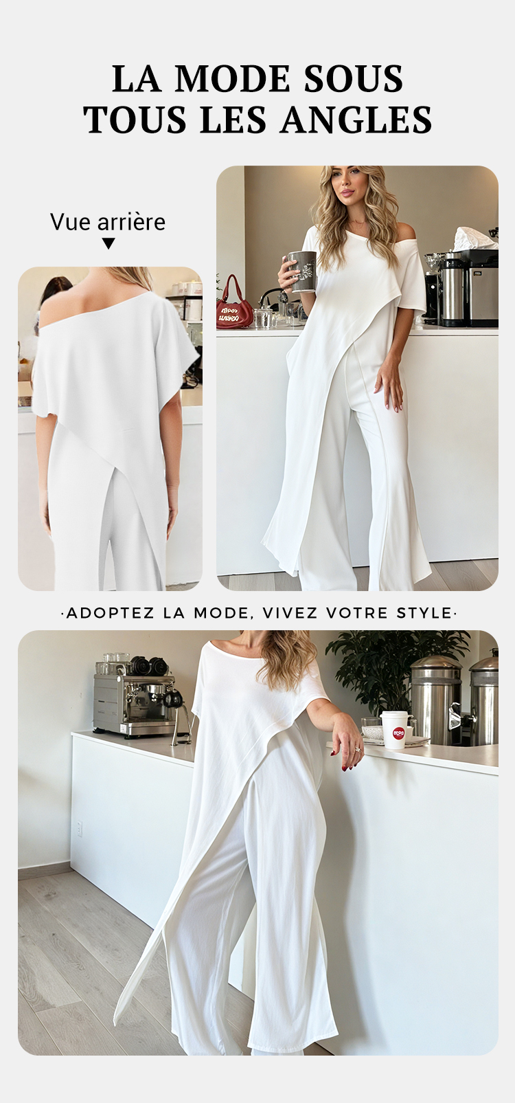 Ensemble d'un top et d'un pantalon décolletés unicolores