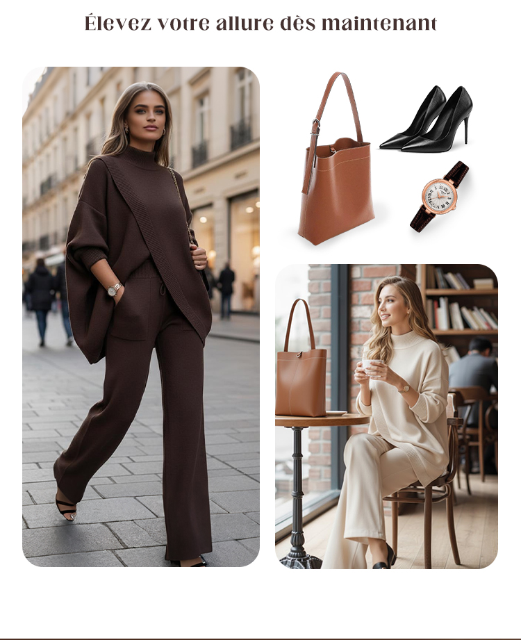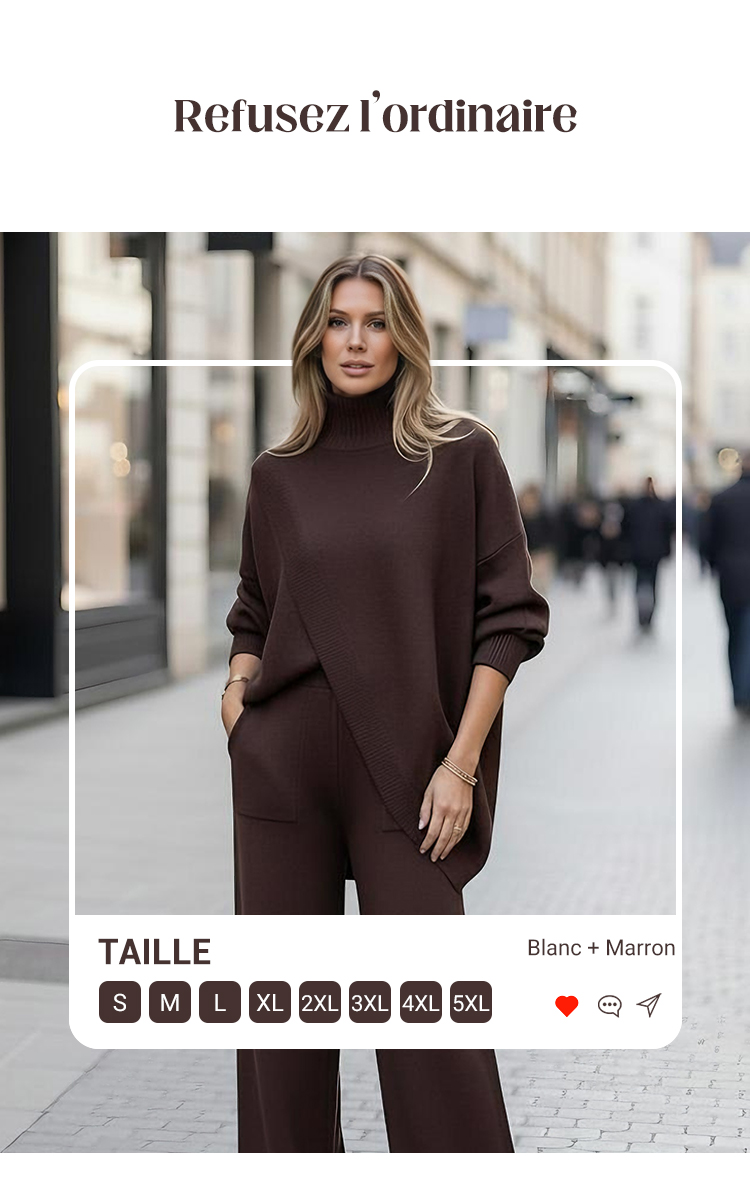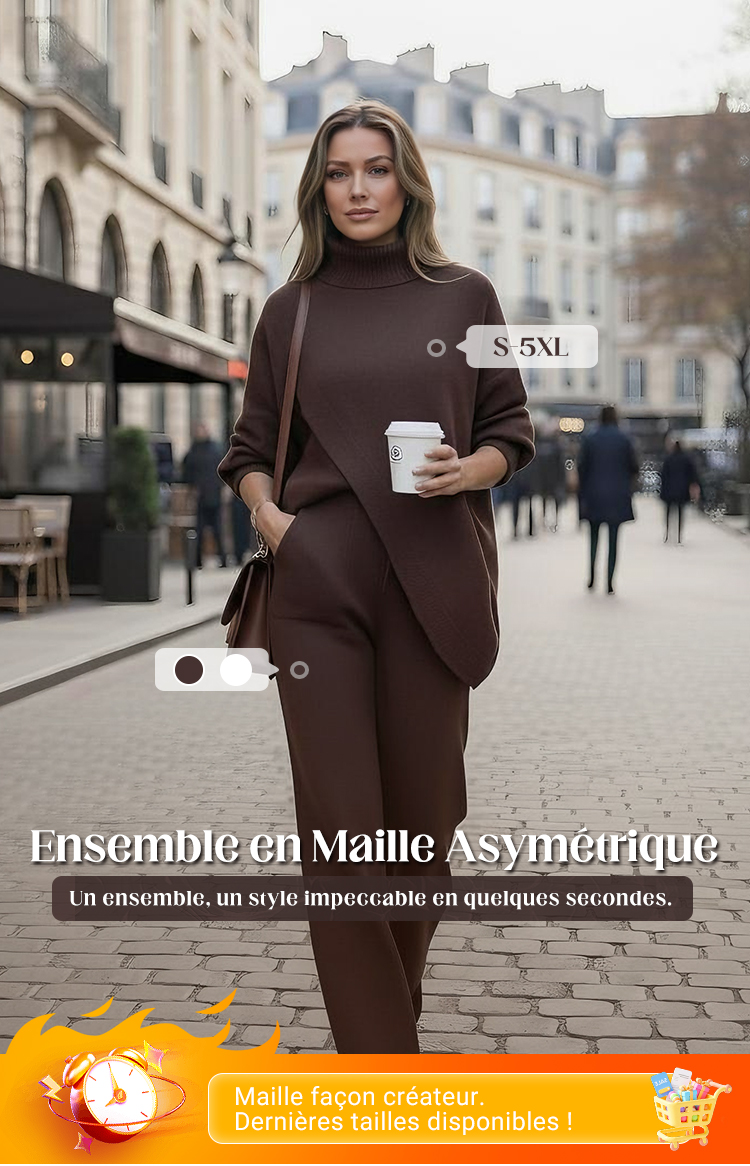 🔥 Cet ensemble en maille luxueuse comprend un haut asymétrique et un pantalon confortable, vous permettant de profiter d'un confort et d'une élégance aussi bien à l'intérieur qu'à l'extérieur. 💖👇👇