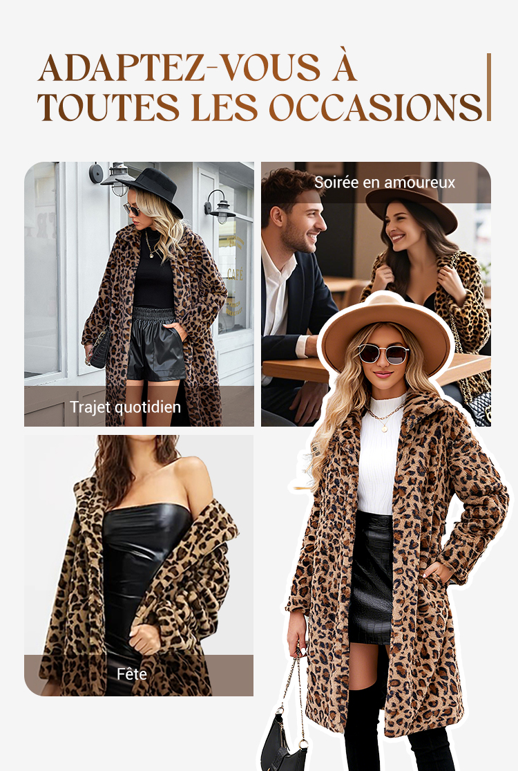 ❄️Offres spéciales hiver❄️ Veste mi-longue à motif léopard pour femmes