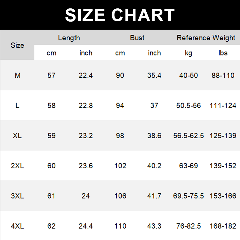 Tailles : S, M, L, XL, 2XL, 3XL, 4XL