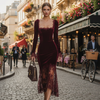 ENCOLURE CARRĂE FLATTERANTE - L'encolure carrĂ©e d'inspiration vintage encadre magnifiquement les clavicules et le dĂ©colletĂ©, rehaussant votre Ă©lĂ©gance naturelle et vous offrant un look classique mais captivant, idĂ©al pour les occasions formelles.